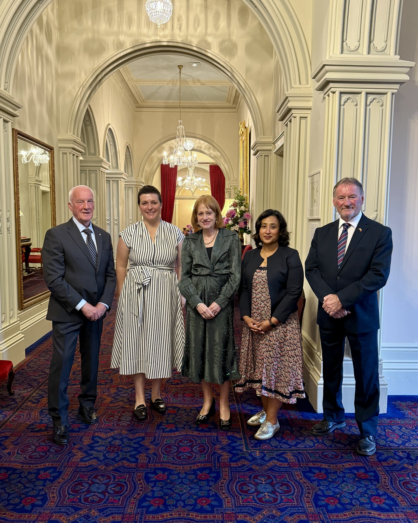 In the afternoon at Government House, the Governor of Tasmania, the Honourable Barbara Baker, and Emeritus Professor Don Chalmers received Acting British Consul-General, Mrs Sunny Ahmed, and Deputy Consul-General, Mrs Oonagh Lewis, together with the Honorary Consul for the United Kingdom in Tasmania, Mr Frank McGregor.