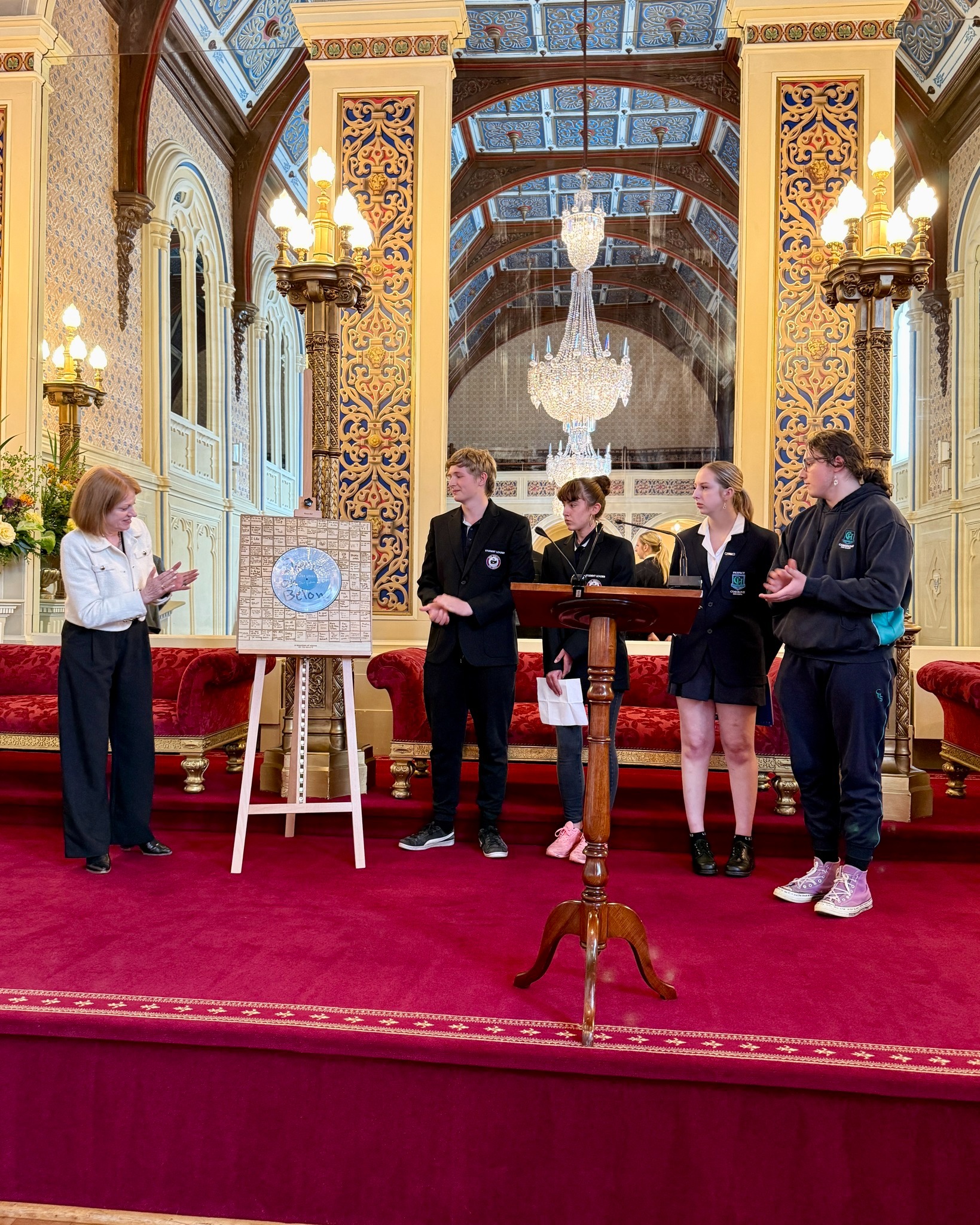 In the afternoon, the Governor and Professor Chalmers hosted the launch of ‘On the Record’, a student-led artwork inspired by the Commissioner for Children and Young People Tasmania and Terrapin’s project, ‘A Mountain of Voices’.