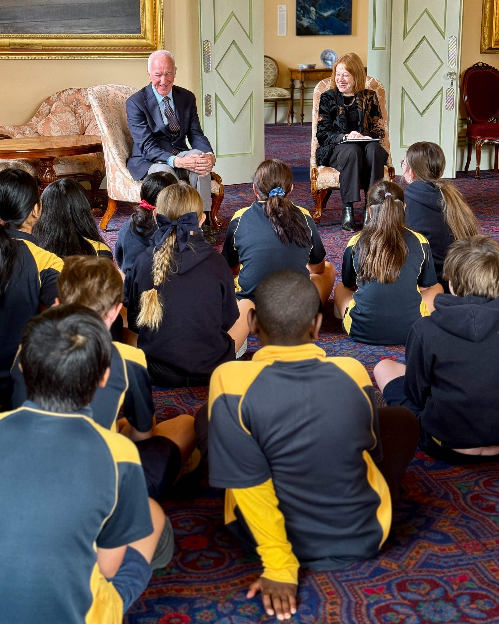 In the morning at Government House, the Governor of Tasmania, the Honourable Barbara Baker, and Emeritus Professor Don Chalmers hosted a visit by Grades 5/6 students from Glenorchy Primary School.