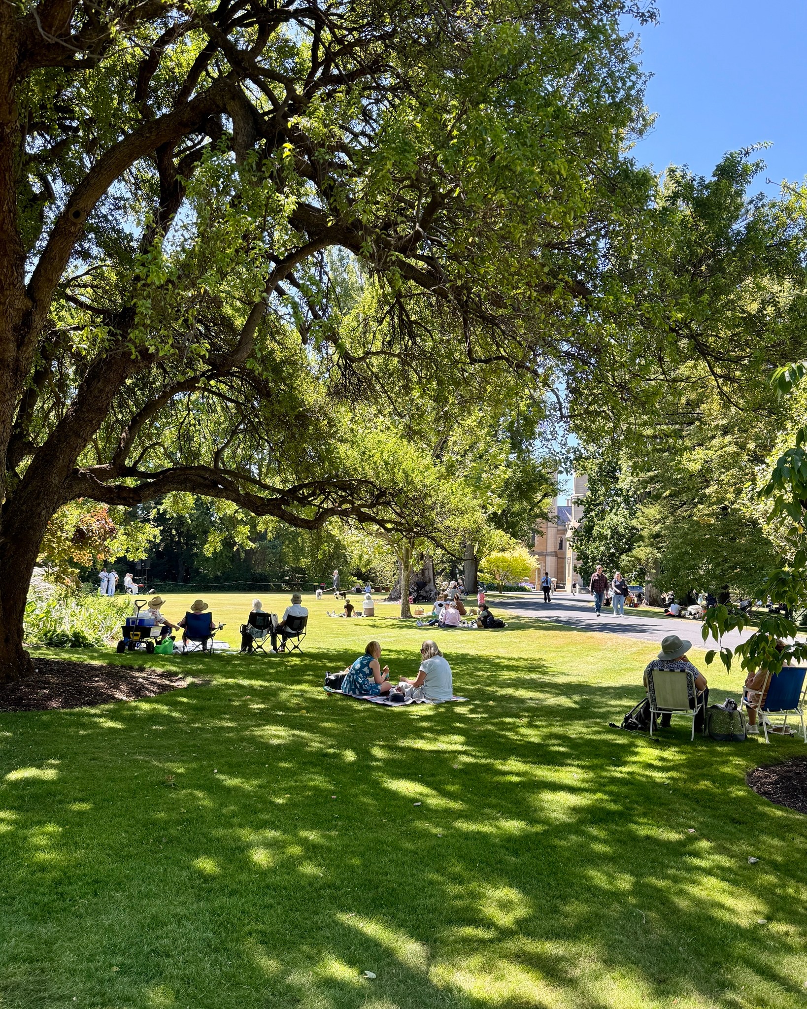 In the afternoon, the Governor of Tasmania, the Honourable Barbara Baker, and Emeritus Professor Don Chalmers welcomed members of the public to enjoy Lunch on the Lawns at Government House.