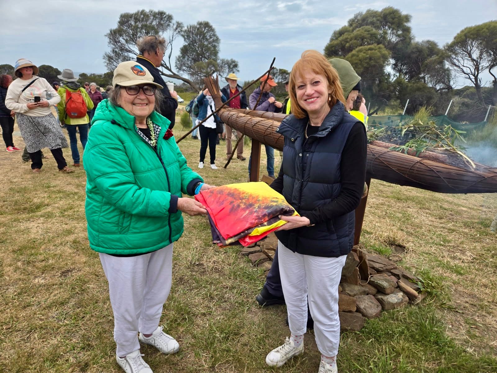 In the morning at Tebrakunna, Little Musselroe Bay, Cape Portland, the Governor of Tasmania, the Honourable Barbara Baker, accompanied by Emeritus Professor Don Chalmers, delivered an address at the official opening of the Mannalargenna Day Festival 2025 hosted by the Melaythenner Teeackana Warrana Aboriginal Corporation.