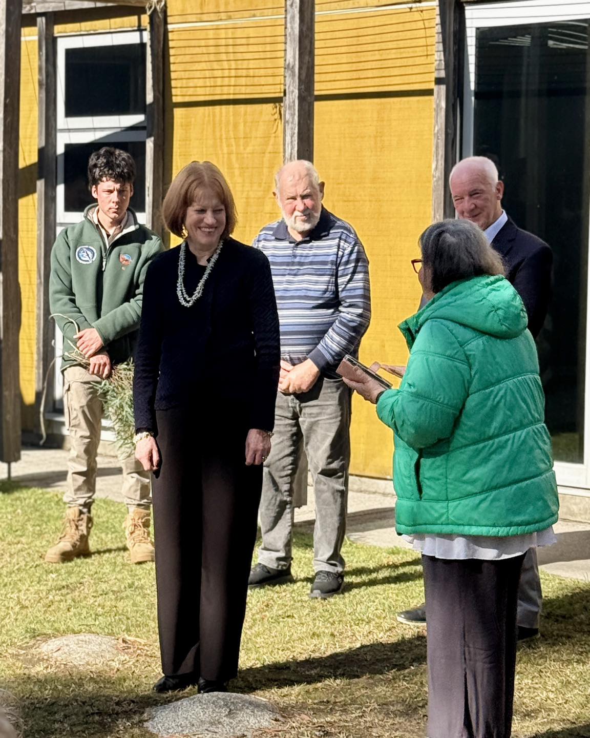 In the morning at Noonameena, University of Tasmania, Newnham, the Governor of Tasmania, the Honourable Barbara Baker, and Emeritus Professor Don Chalmers participated in a yarning circle hosted by the Melaythenner Teeackana Warrana Aboriginal Corporation.