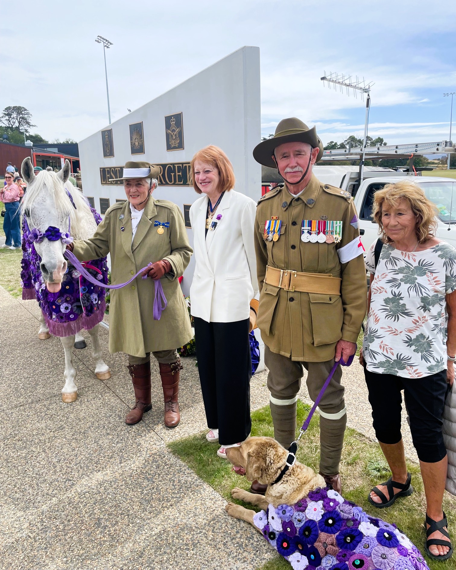 In the morning at the Campbell Town Cenotaph, the Governor of Tasmania, the Honourable Barbara Baker, and Emeritus Professor Don Chalmers attended the commemorative service to mark the 2026 National Day for War Animals hosted by the Military Brotherhood Military Motorcycle Club.