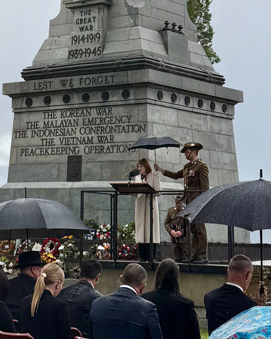She encouraged Tasmanians to remember all who have served, those who did not return, and those who returned forever changed.