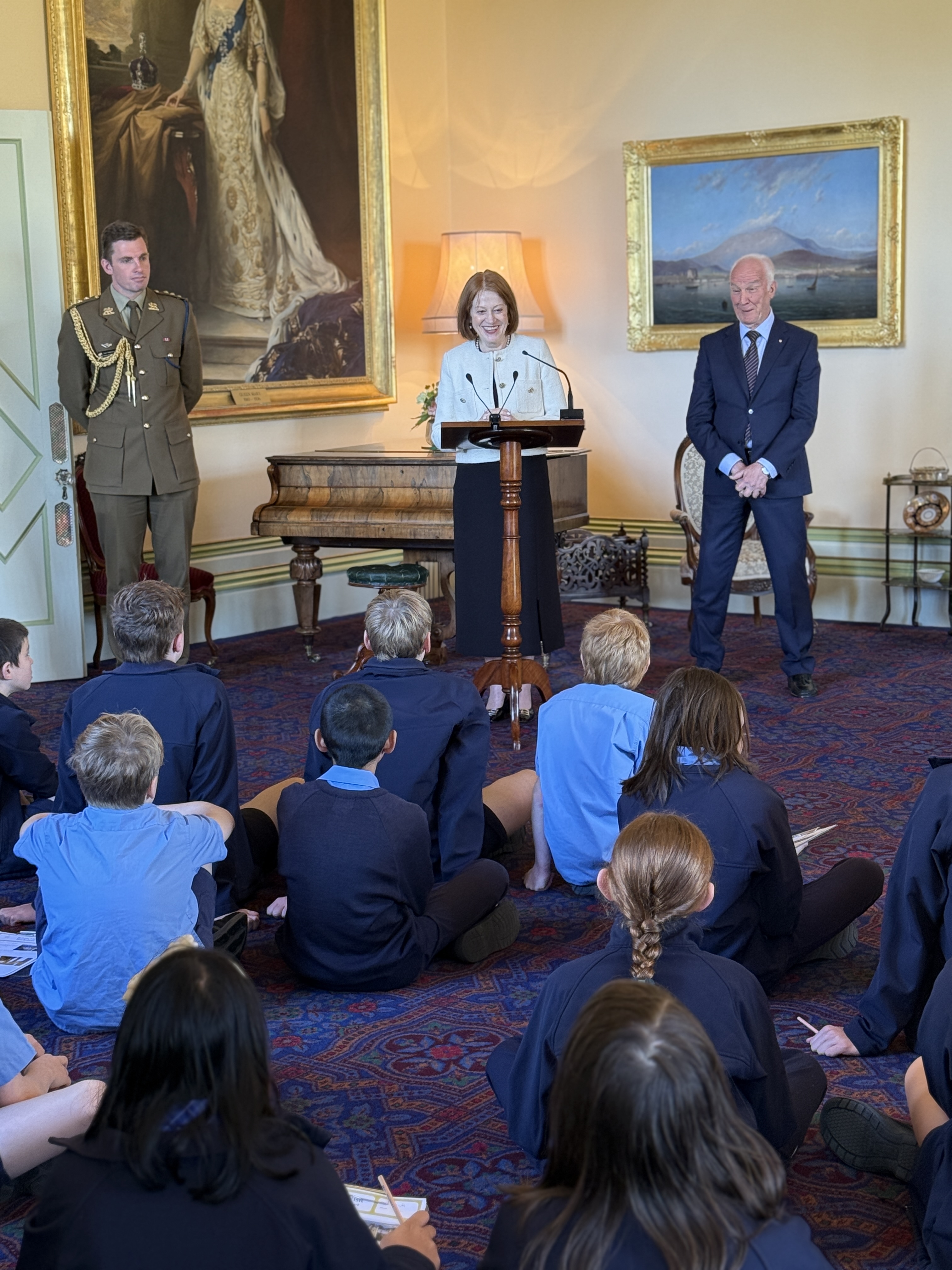 Later at Government House, Governor and Professor Chalmers hosted a visit by Year 6 students from Southern Christian College.
