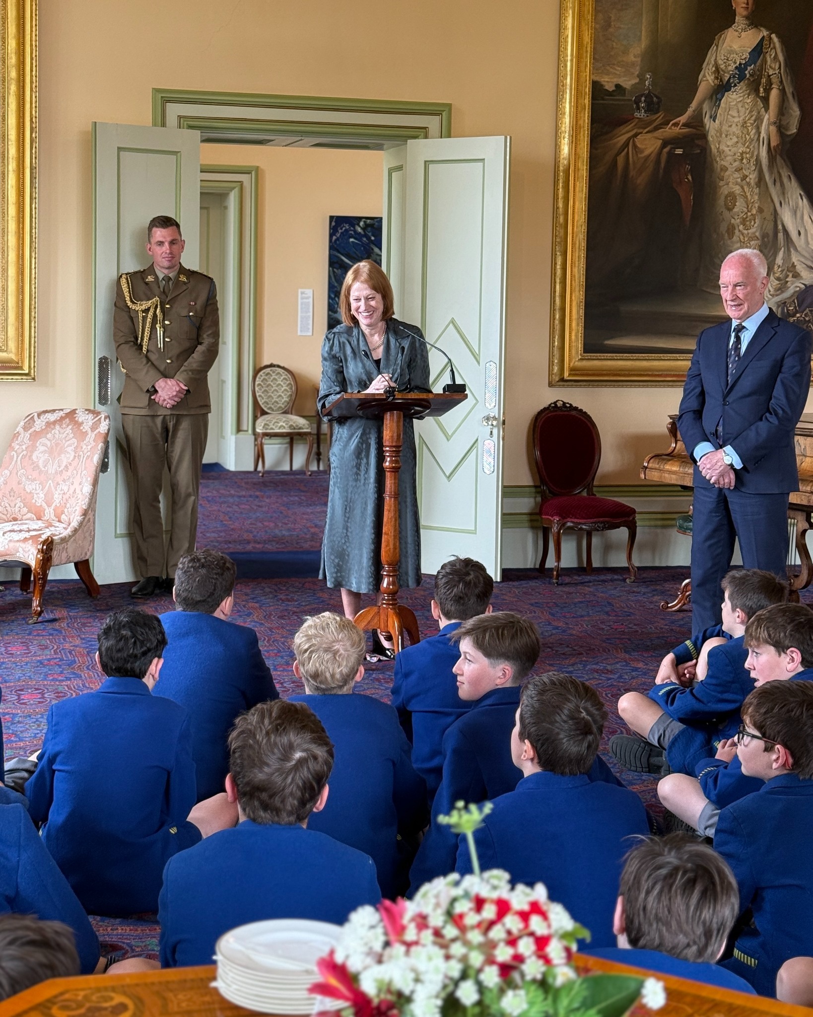 In the morning at Government House, the Governor of Tasmania, the Honourable Barbara Baker, and Emeritus Professor Don Chalmers hosted a visit by Year 6 students from St Virgil’s College Junior School.