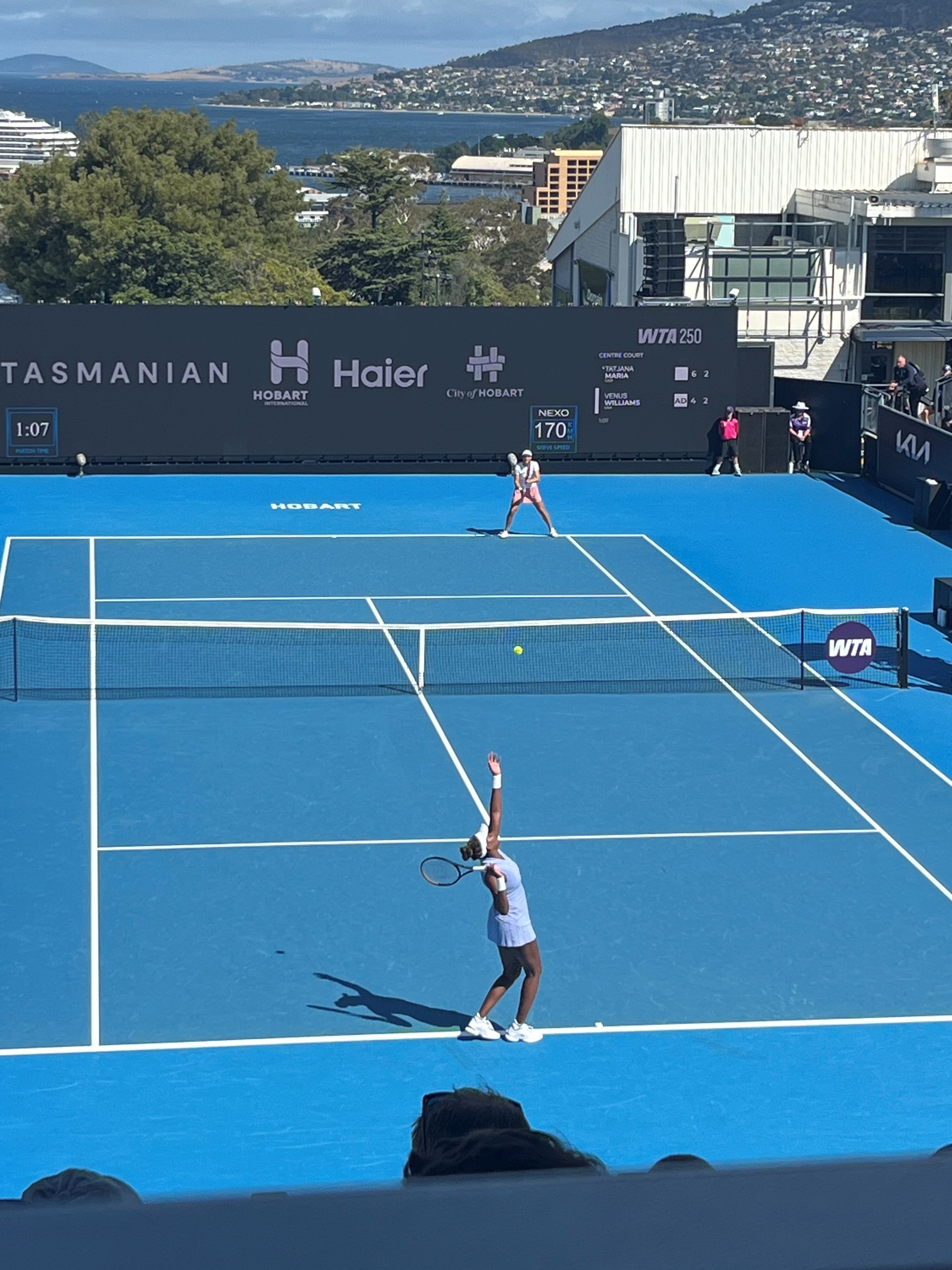 In the afternoon at the Domain Tennis Centre, the Governor of Tasmania, the Honourable Barbara Baker, and Emeritus Professor Don Chalmers attended the 2026 Hobart International tennis tournament hosted by Tennis Tasmania.